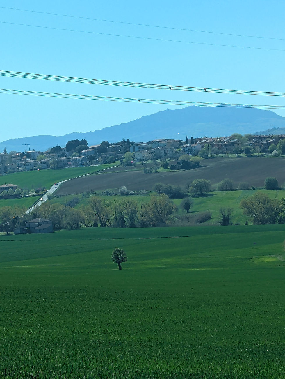 Coriano is yet another small Italian village situated on top of a long ridge that provides visibility down to the Adriatic on a clear day. After the first failed attempt, the Hussars spent a week on the ridge opposite Coriano shelling and being shelled relentlessly. The view across the valley.